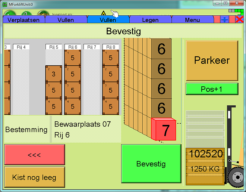 During the filling of the boxes, the desired product information is added to the box. The forklift driver sees at which place he needs to put in the box in the storage