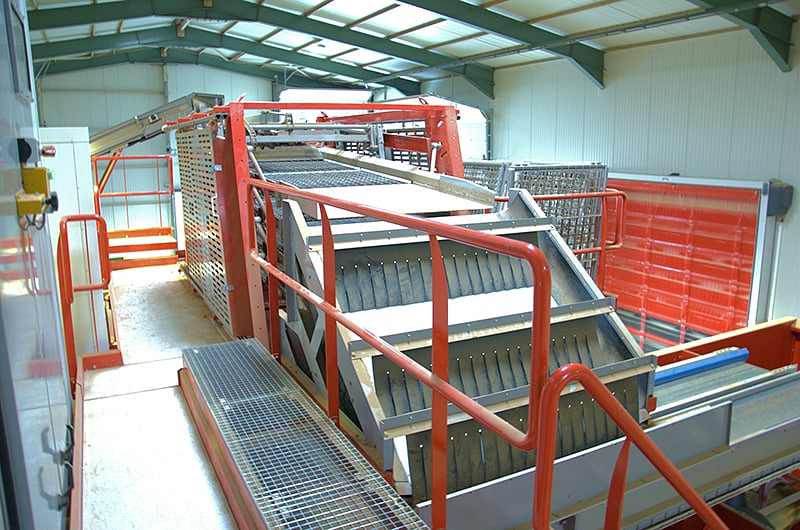 De aardappelen en uien sorteermachine loopt opvallend rustig en stabiel. Dat komt door het zeer degelijke hoofdframe met zeefdekken die indirect worden aangedreven door getande riemen. De slag van de onderhoudsvrije excentrieken is per sorteerdek eenvoudig verstelbaar. De beveiligde draaiende delen zijn voor het primaire onderhoud goed bereikbaar.