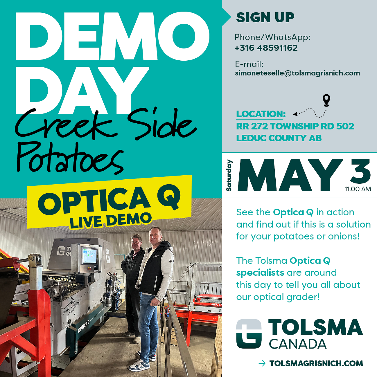 The Tolsma Optica Q specialists are around this day to tell you all about our optical grader!